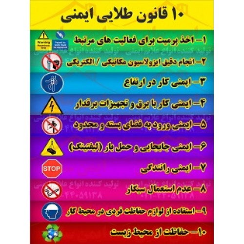 نام محصول علائم ایمنی : بنر ایمنی 10 قانون طلایی ایمنی