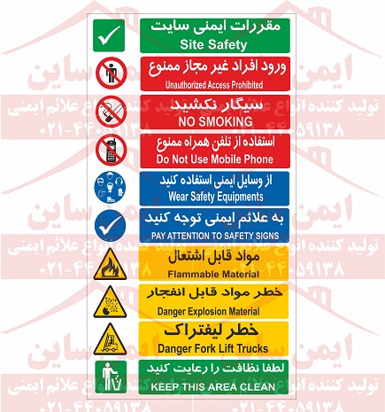 نام محصول علائم ایمنی : علائم ایمنی چند منظوره مقررات ایمنی سایت